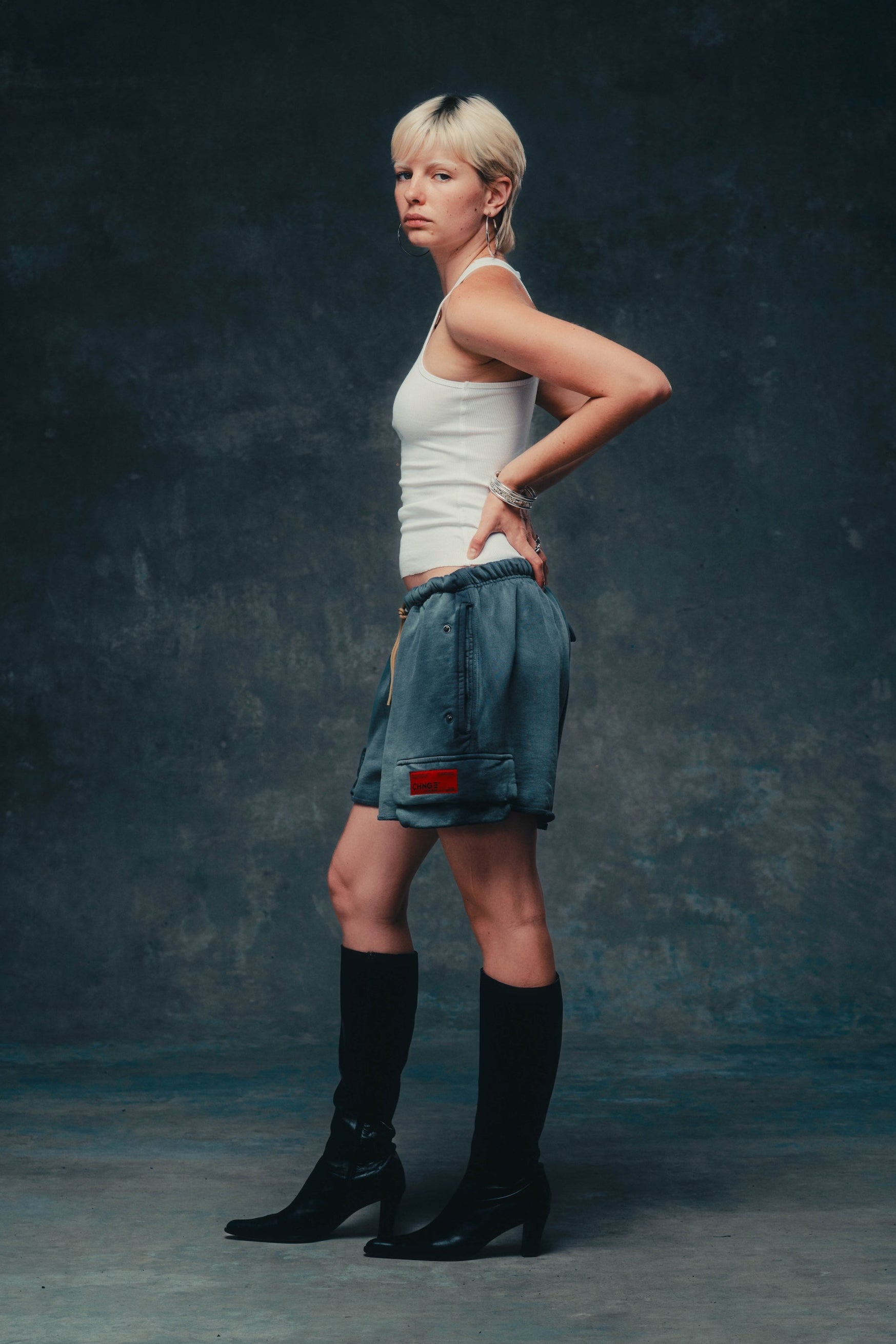 THIS BABY TEE HAS A SHRUNKEN FIT WITH A SLIGHTLY CROPPED BODY LENGTH HITTING JUST AT THE WAIST LINE.