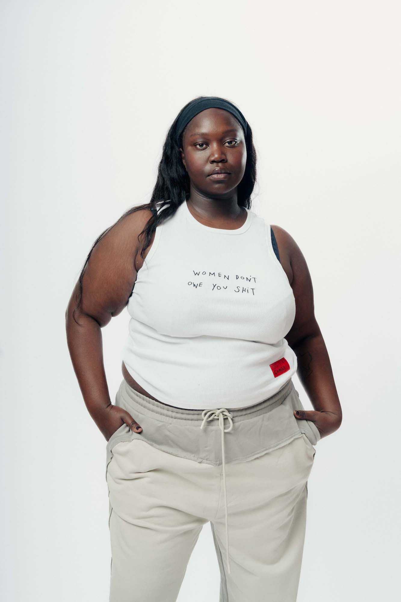 Women Don't Owe You Shit Rib Mini Tee (White)