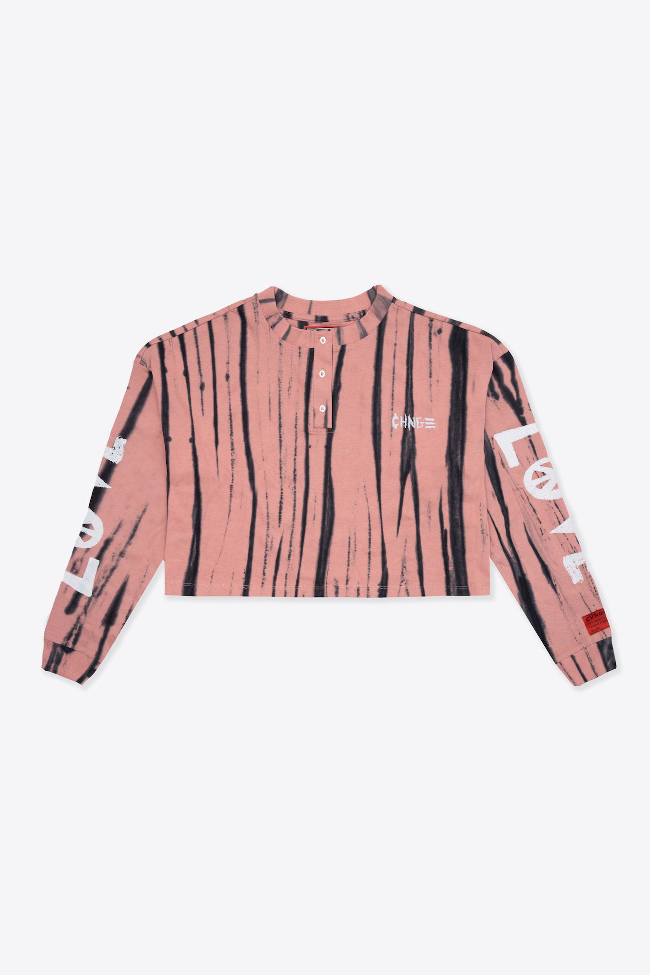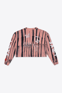 Tie Dye Love Peace L/S Cuffed Henley Crop (Dusty Rose)